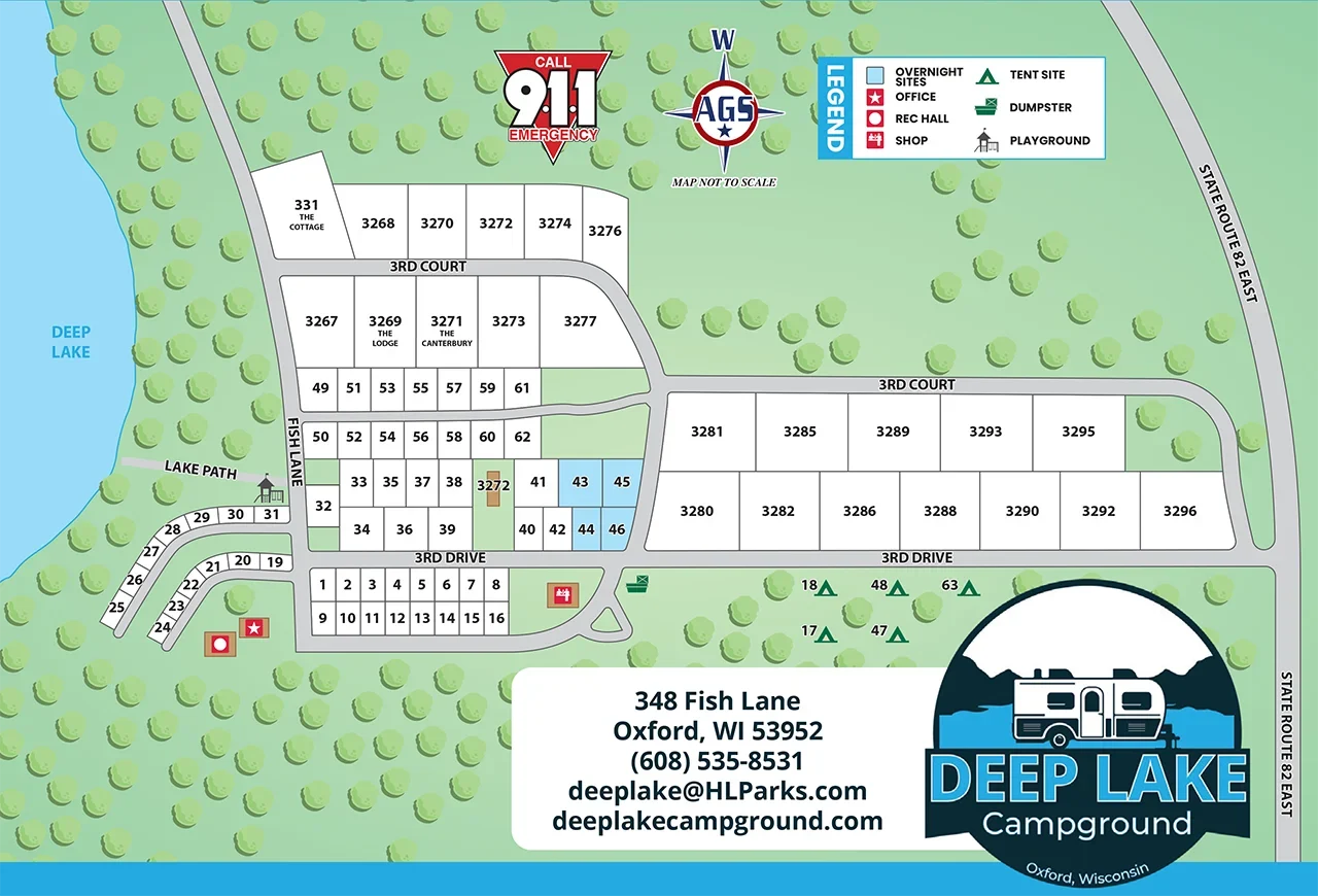 Planning your stay? Our resort map makes it easy to explore the layout of Deep Lake Campground and choose the spot that’s just right for you. Whether you’re looking for a lakefront RV site, a vacation rental close to the action, or a quiet corner to unwind, the map will help guide your decision. Take a look around and start visualizing your stay—your perfect site is just a click away.
